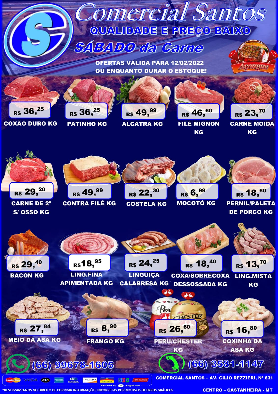 Itens necessários na cozinha de qualquer família, as frutas, verduras e carnes tem neste sábado preços mais acessíveis na Comercial Santos, na Gilio Rezieri, 631, no centro da cidade.