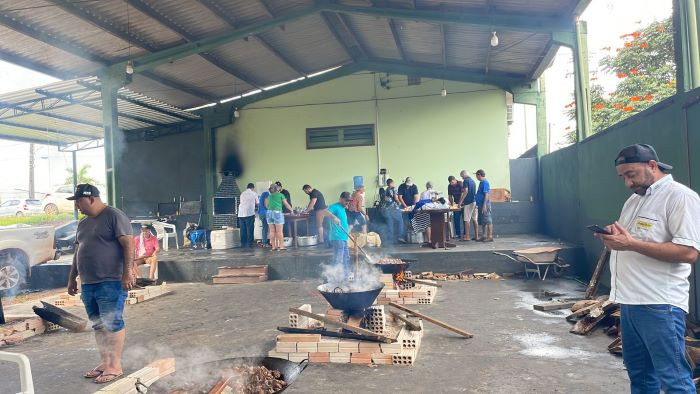 Ao longo de todo o sábado, e mesmo antes, na sexta feira, equipes já trabalhavam em prol do almoço deste domingo, que acontece no Salão de Eventos da Paróquia Santo Antônio, tendo como prato principal o “Porco no Tacho”.