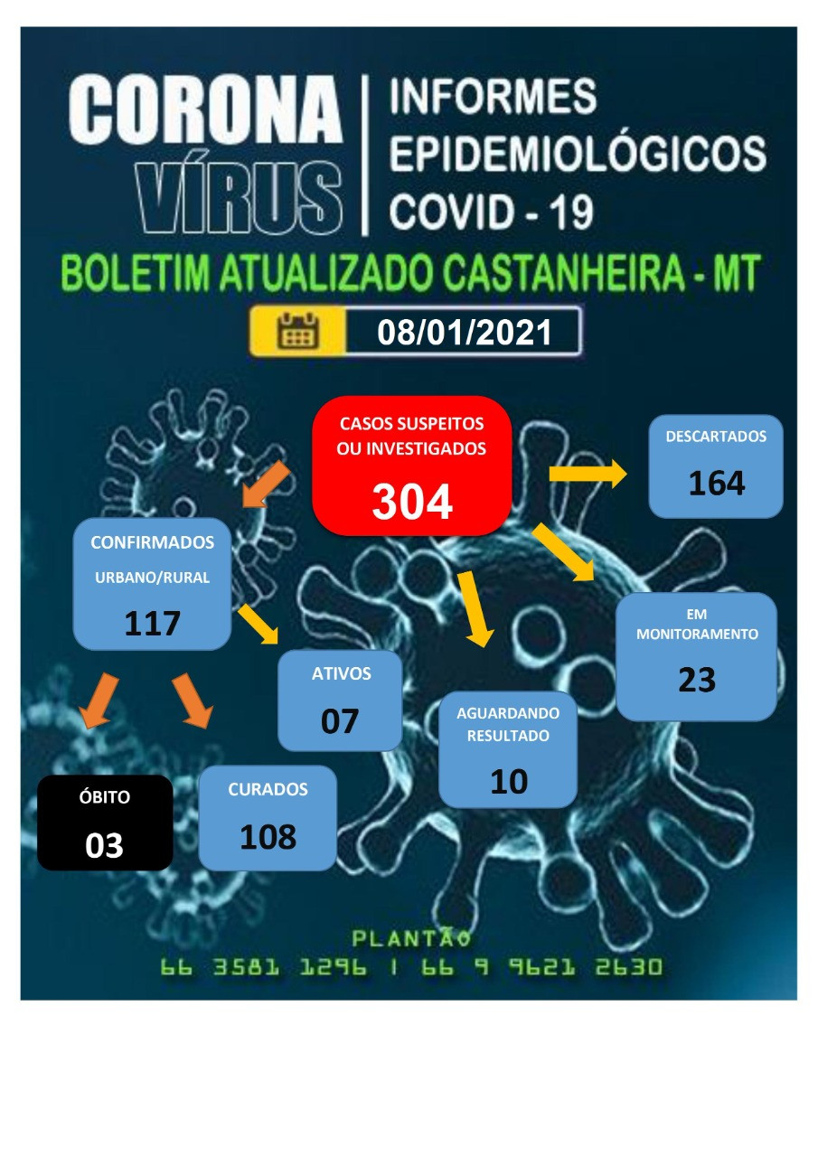 Pelos dados do documento, divulgado nesta sexta-feira, 08, nos primeiros dias do ano 07 novos casos foram confirmados, 10 aguardam resultados e 23 estão sendo monitorados pelo órgão municipal. Quando confrontados com números de outros municípios da região noroeste, embora alguns tenham população maior, os de Castanheira ainda são baixos. Em Brasnorte, por exemplo, segundo Boletim Recente, existem 145 casos ativos. Até por isto não seria o caso de reforçar a importância dos cuidados, inclusive no comércio, bares e similares? Alguns castanheirenses anseiam por resposta.