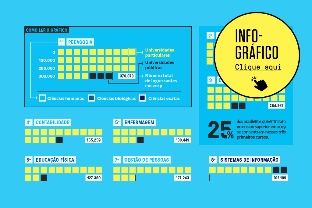 Pedagogia, o curso mais popular do país. O segundo lugar fica com