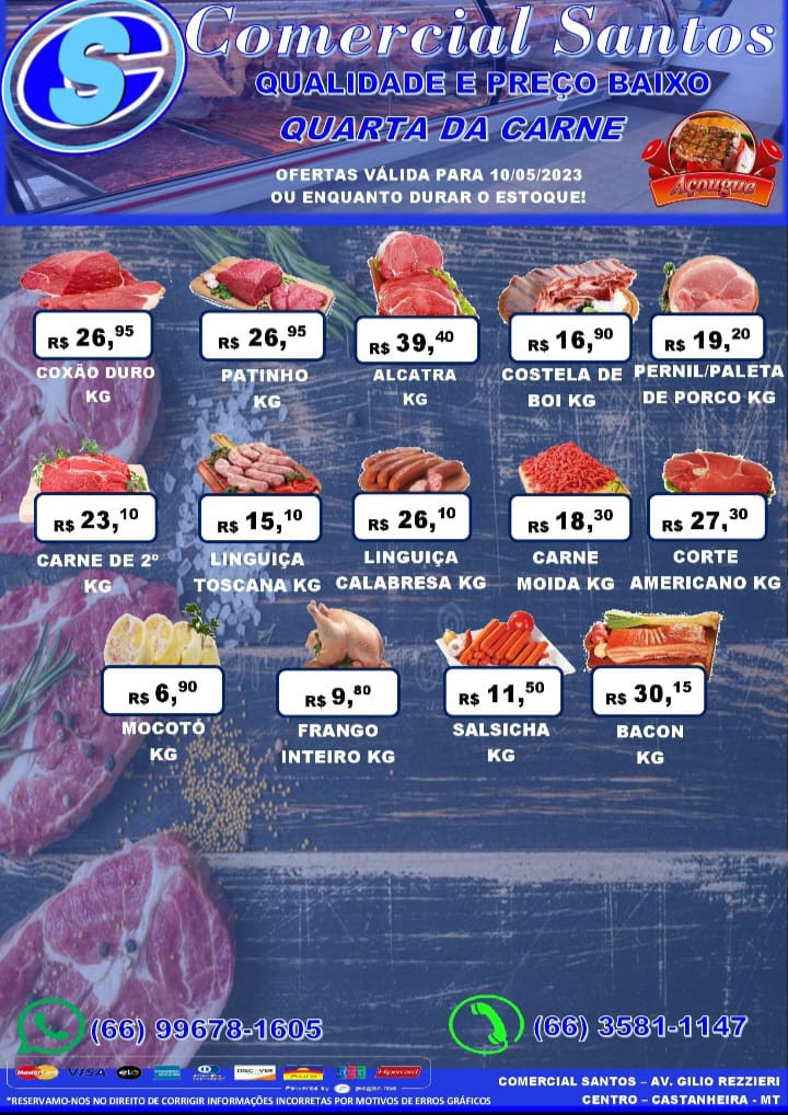 Na lista de carnes em promoção nesta quarta, no Comercial Santos, que você pode conferir logo abaixo, encontra-se o “corte americano”, bastante apreciado entre os brasileiros.