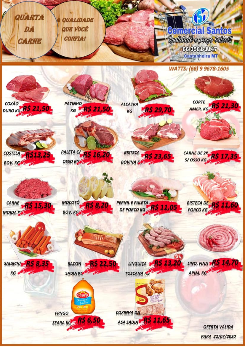 O castanheirense que busca economia e qualidade no comer, já sabe que quarta-feira é o dia da carne no Comercial Santos. Todos os cortes mais conhecidos ficam disponibilizados a preços bastante acessíveis, enquanto durarem os estoques.