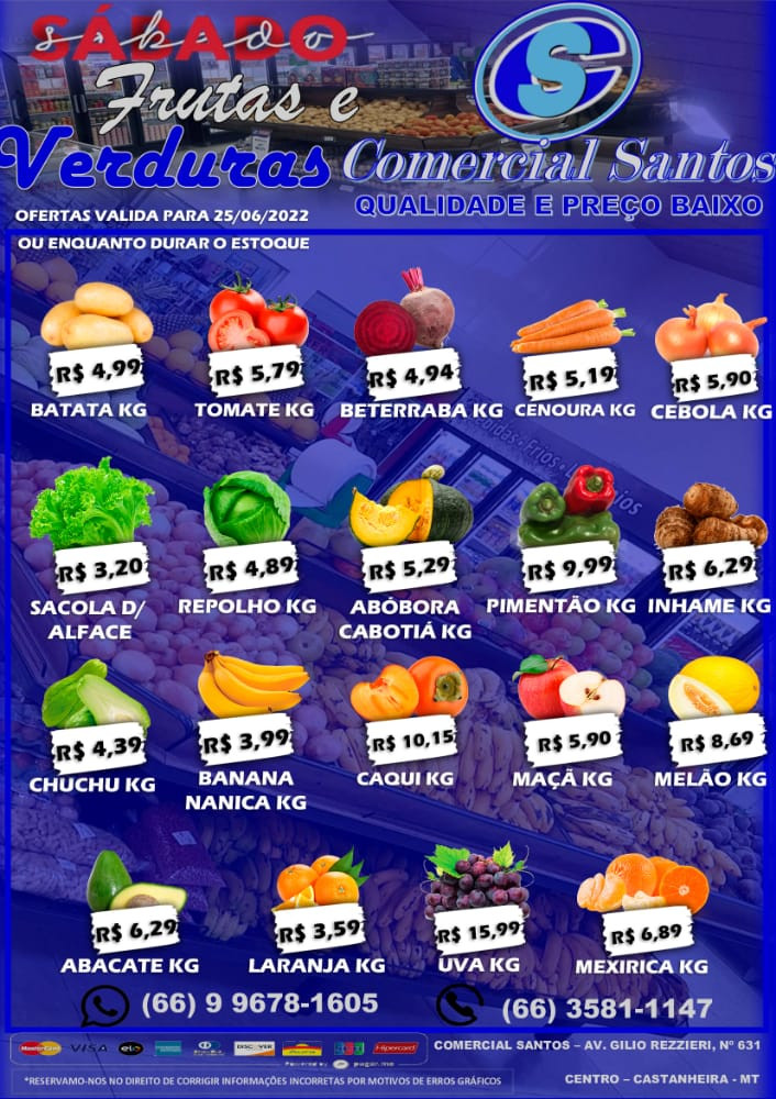 Dezenas de itens estão sendo disponibilizados com descontos neste sábado, 25, para quem visitar o Comercial Santos, referência de bons e baratos produtos em Castanheira.