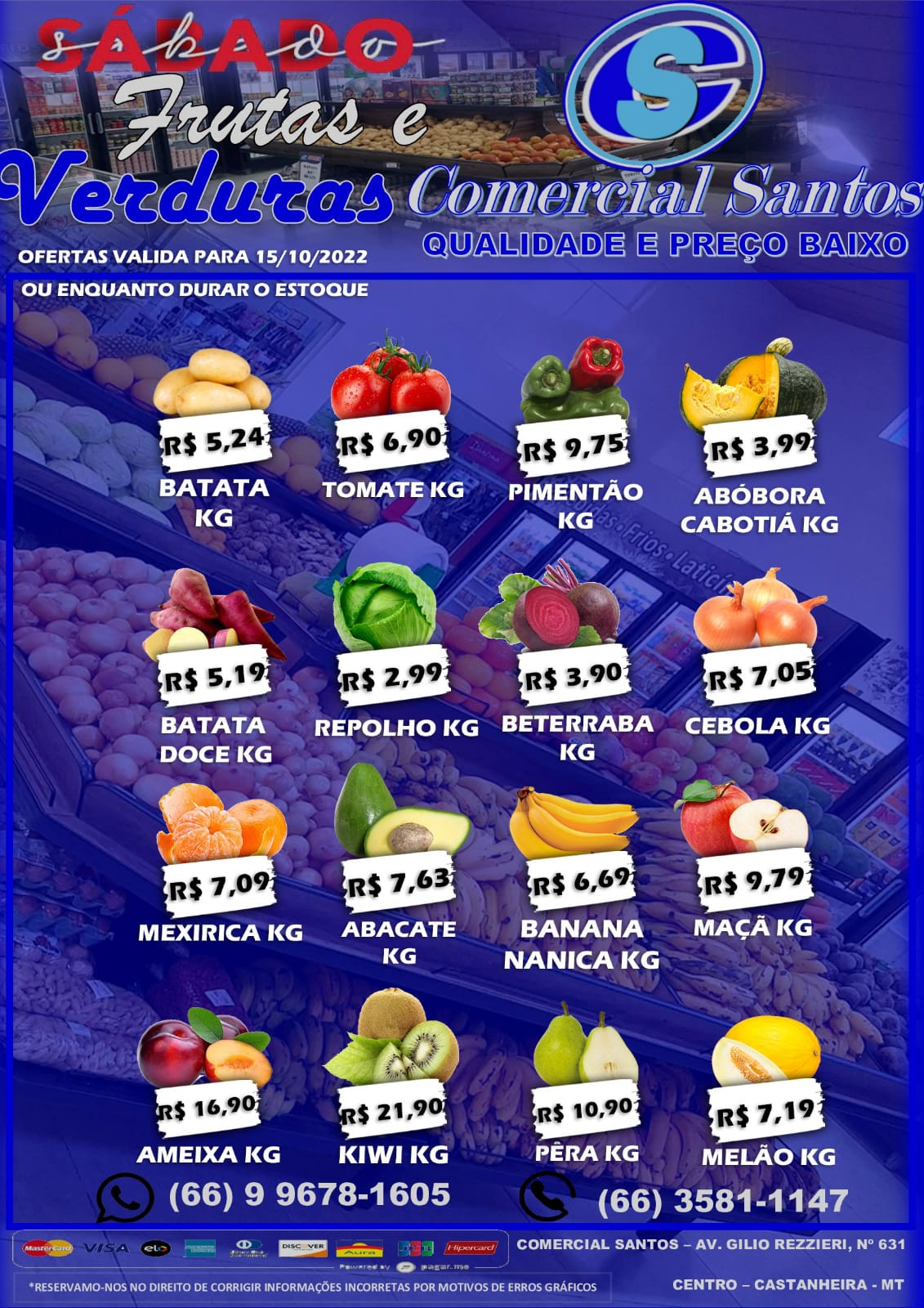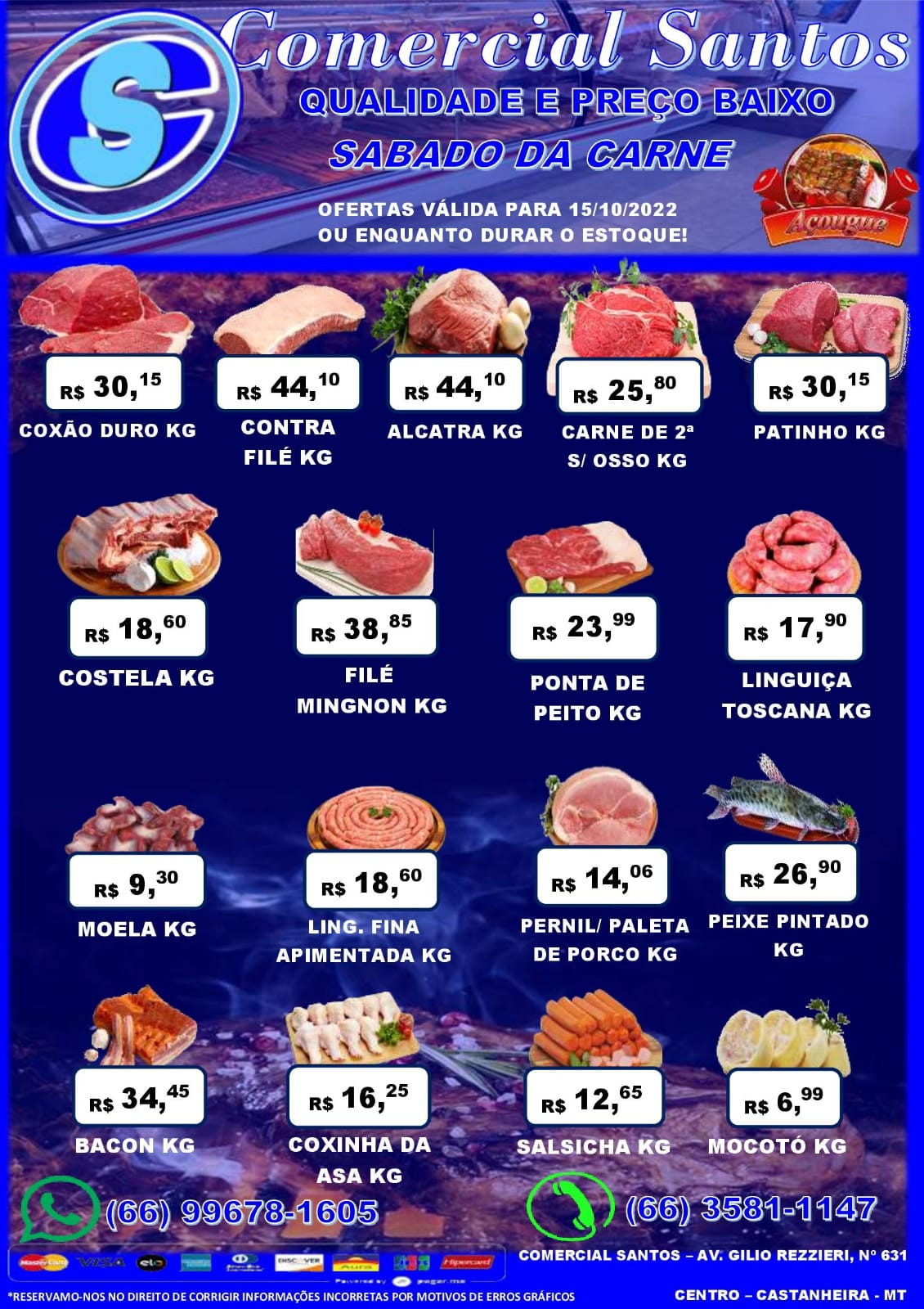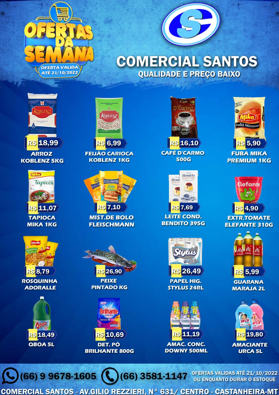Cinquenta produtos estão sendo disponibilizados neste sábado, 15, a preços mais acessíveis no Comercial Santos. Confira, a seguir, quais são e agende uma visita ao endereço mais visitado da Av. Gilio Rezzieri. Vale a pena!