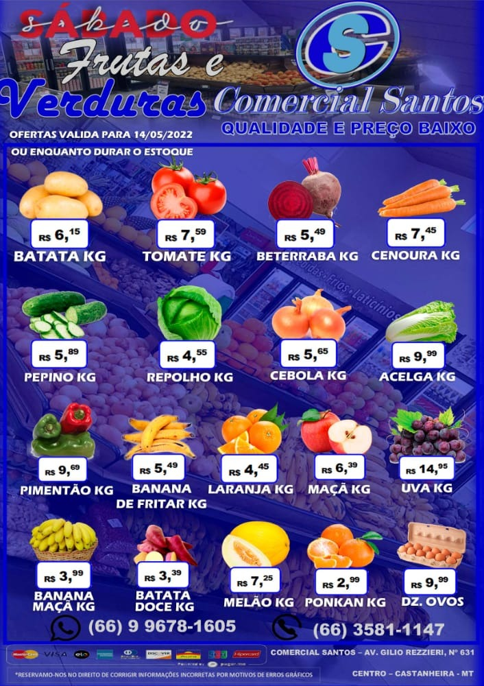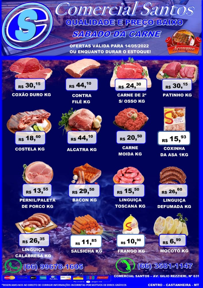 Comercial Santos: Ofertas do dia em carnes, frutas e verduras
