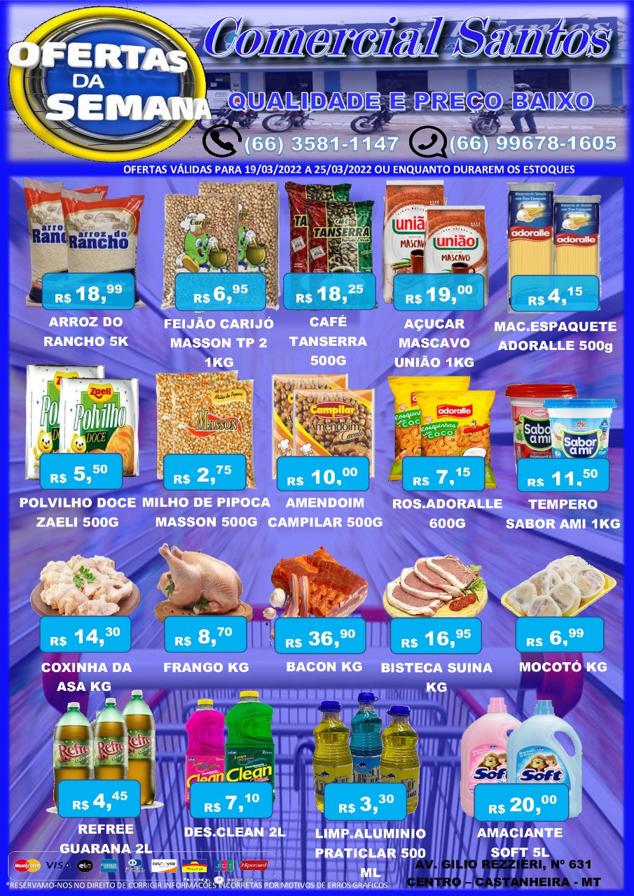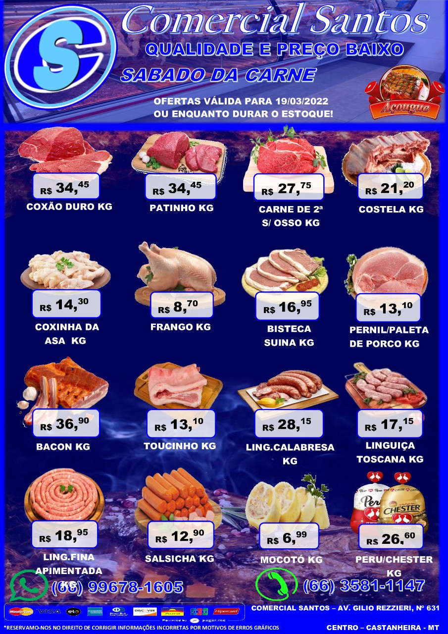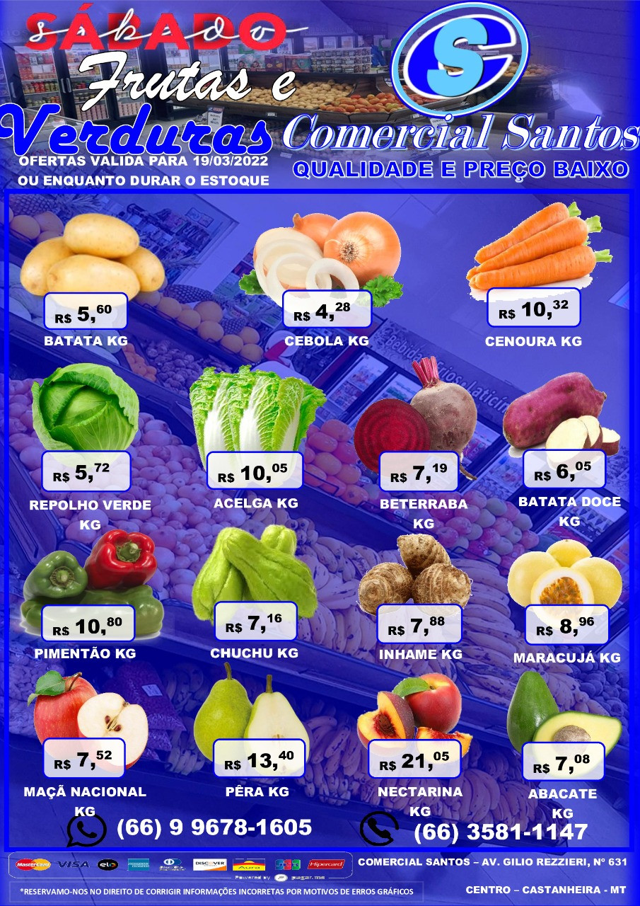 Todo sábado, você já sabe, a lista de produtos com descontos no Comercial Santos é enorme, pois inclui as seções de verduras, frutas, legumes e carnes e uma lista especial e produtos.