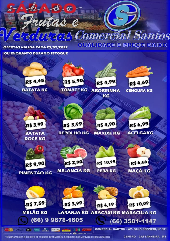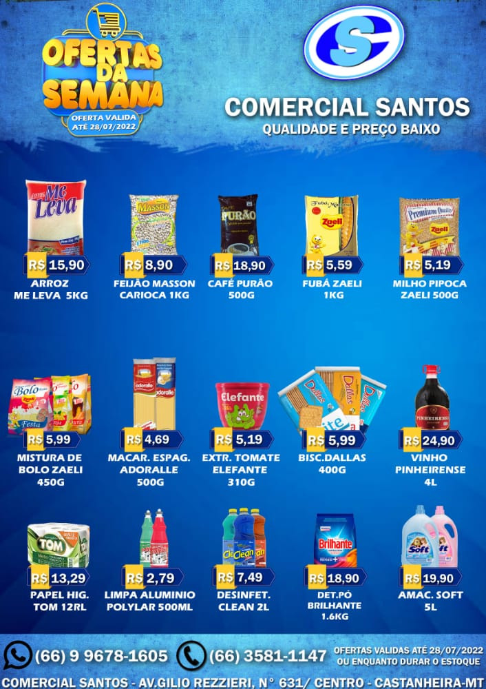 Cinquenta. Este o número de produtos que você pode encontrar a preços mais acessíveis neste sábado, 24, no Comercial Santos.