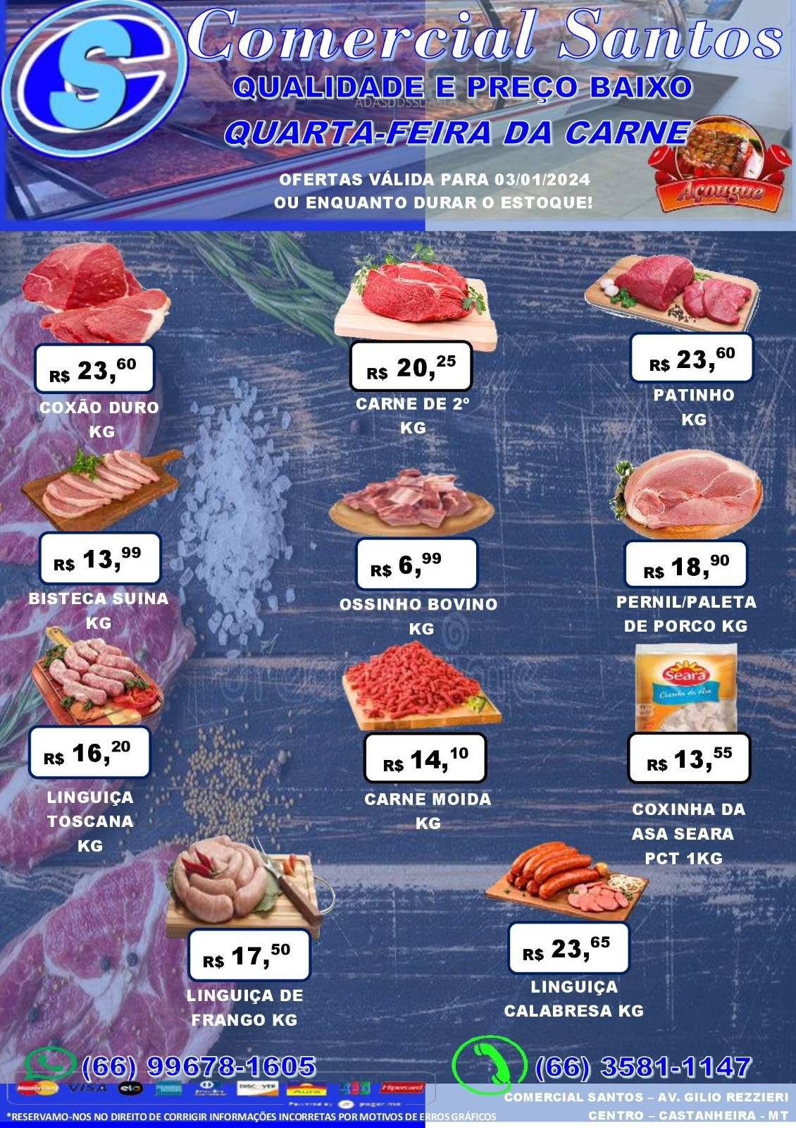 Segue o registro dos preços oferecidos para alguns cortes de carne nesta quarta, 03, e a lista de produtos em destaque na semana.