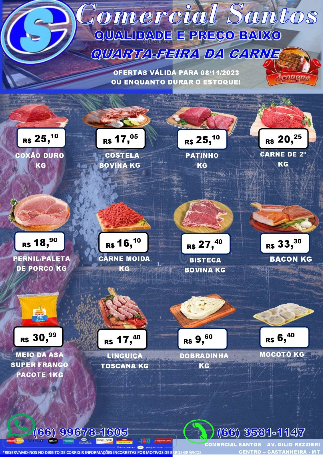 O castanheirense já está acostumado, nas quartas e sábados, com os preços econômicos dos cortes de carne, no setor de carnes do Comercial Santos.