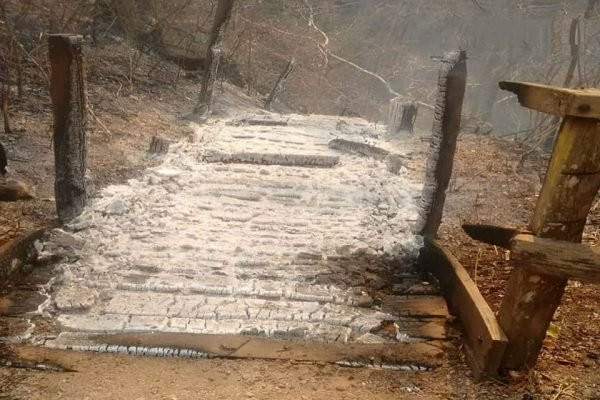 Uma das cenas mais tristes do final de semana em vários pontos do Estado, inclusive Castanheira, onde diversas propriedades do Assentamento São Sebastião foram atingidas, foi o fogo consumindo, no domingo, 13, as escadarias do ponto turístico conhecido como Dolina Águas Milagrosas, em Cáceres, que fica numa região de difícil acesso, com formações de serras. “Só aeronaves para fazer o combate”, destaca Francis.