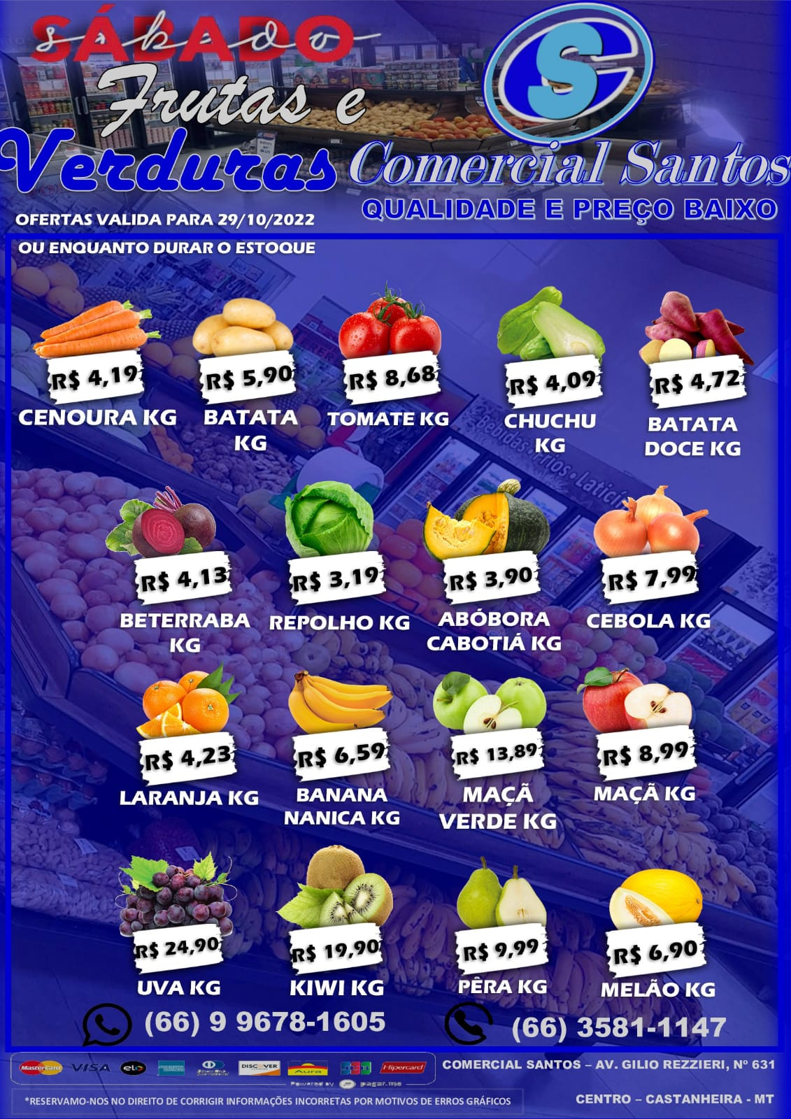 E ai, vai dar Jair Bolsonaro ou Lula? Deus sabe! Como não somos Ele, façamos aquilo que sabemos. Uma chegada no Comercial Santos, no sábado, por exemplo, é certeza de economia. Afinal, é o dia de se encontrar, em vários setores do estabelecimento do Vanderlei, produtos com preços mais acessíveis. São 50! Isto mesmo. 50! em cortes de carne, verduras, frutas e outros que estão em oferta na semana.