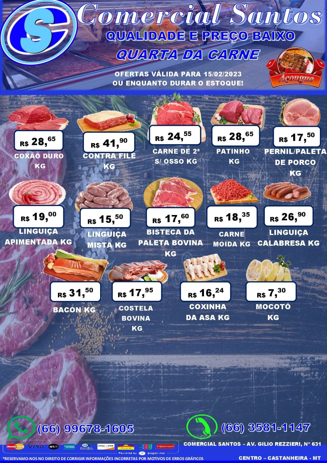 Hoje é dia da carne em promoção, no Comercial Santos. Como já é do conhecimento de todos, quarta e sábado alguns cortes estão bem mais em conta.