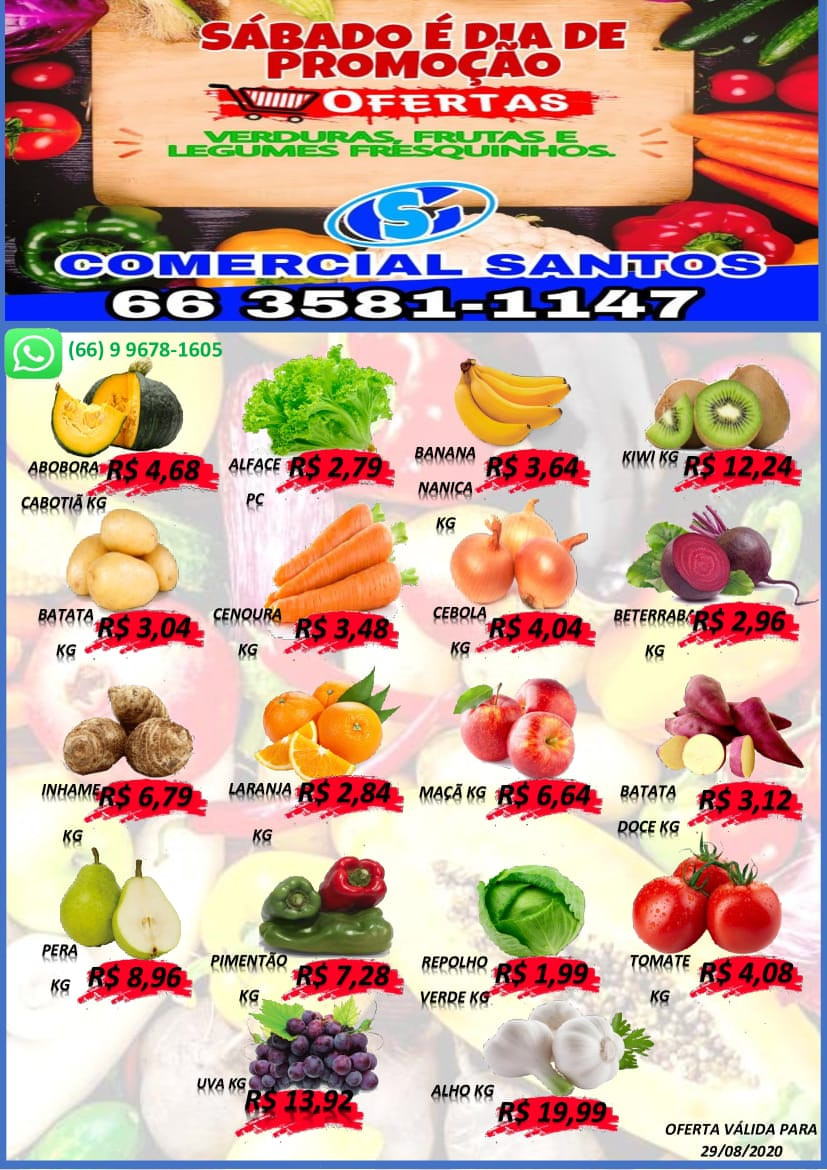 Sábado é dia de promoção em verduras, frutas e legumes no Comercial Santos. Tudo fresquinho e por preços que cabem no seu bolso. Confira os preços e conheça um pouco sobre o tomate.